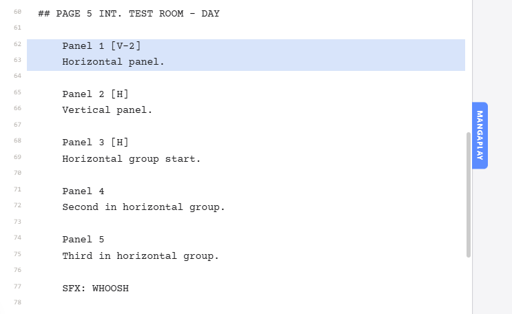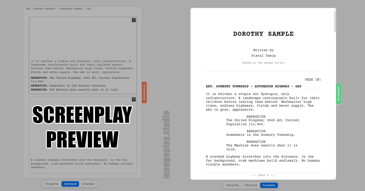 Mangaplay is for anyone making a manga or comic to quickly mock up a storyboard using text. A browser text editor to write a story and immediately visualise the script with intuitive panel layouts — no drawing required.